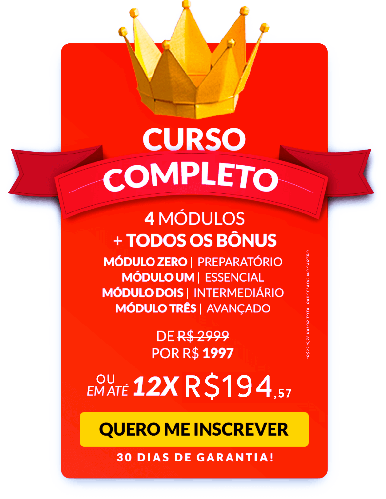Para assegurar o valor oferecido pelo meu curso, você terá acesso a todo conteúdo e suas atualizações durante 4 anos.